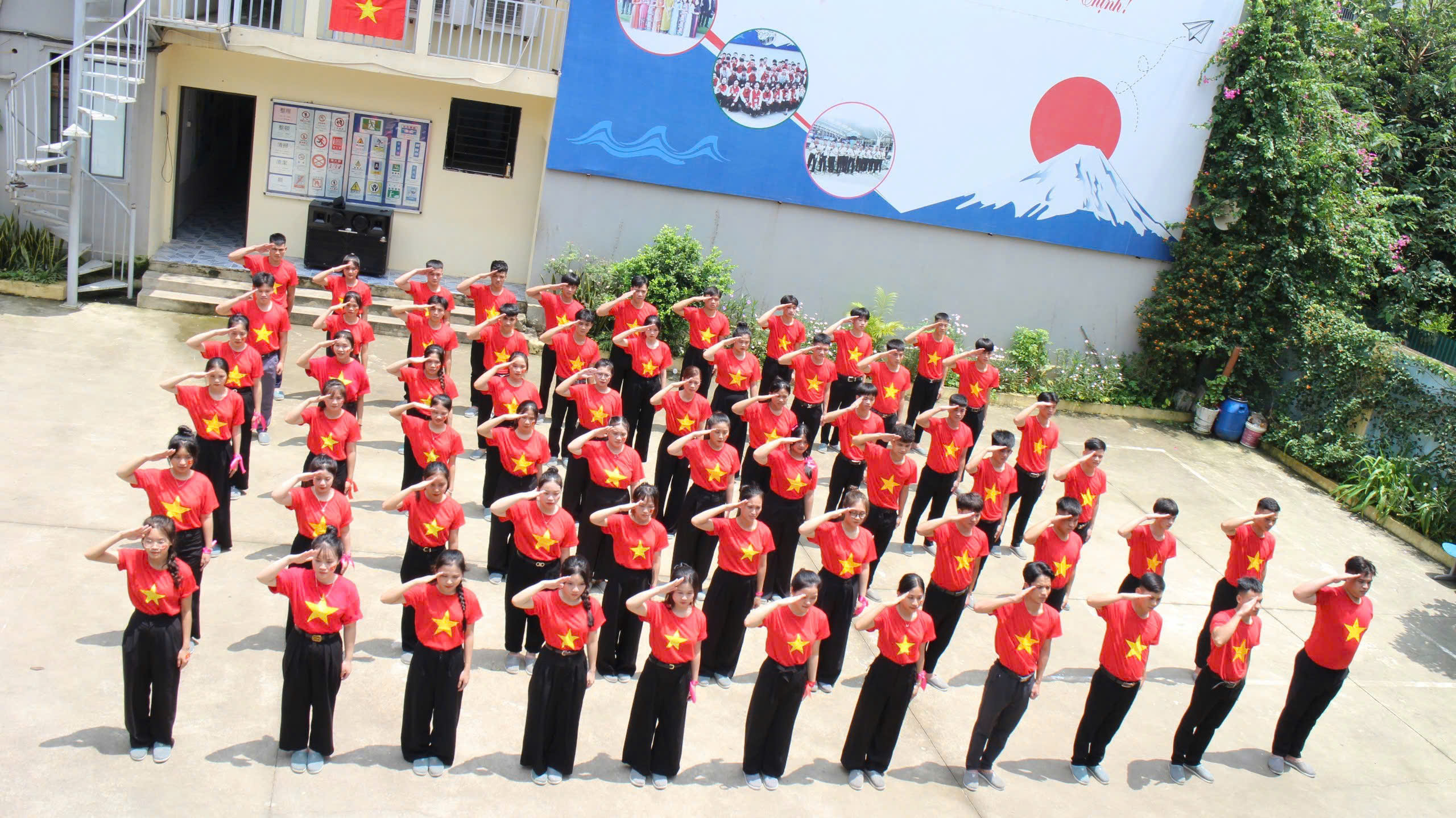Trong không khí trang nghiêm, các học viên của Việt An Thịnh đã cùng nhau đứng chào cờ Tổ quốc trong bộ đồng phục áo đỏ sao vàng, thể hiện tinh thần yêu nước và niềm tự hào dân tộc.